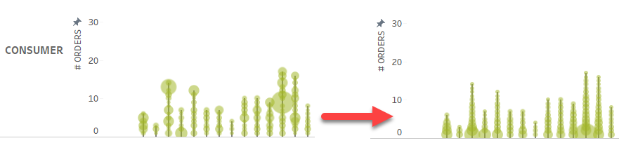 This week’s #WorkoutWednesday visualised the number of orders per week and the size of those orders based on the Sum of Sales, all in a chart that looks like a row of trees. I like the original design and look of these charts.