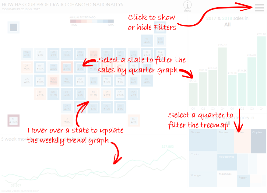 Side note – you may recognise the tile map in this dashboard, which was originally created by Ann Jackson and used in a recent #WorkoutWednesday challenge.