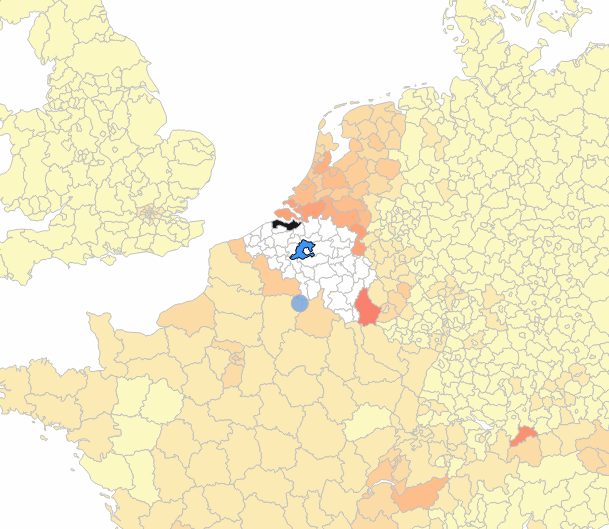 To make it clear which region has been selected, another map layer is used that just draws the selected NUTS 3 region, coloured blue, on top of the map layer that draws all the other regions: