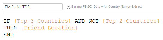 This set is then used in a calculation to return the NUTS 3 regions ([Friend Location]) for the country with the second highest scoring region outside of the home country, i.e. where the country does not equal the selected country: