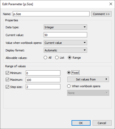 One solution is to add a parameter to the size shelf. Let’s walk through the process.