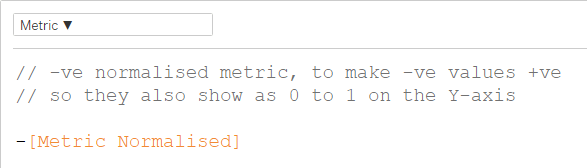 The second set of four calcs are the same except they use the -ve version of the metric shown previously (“Metric ▼”).
