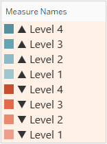 All measures are added to Measure Values and coloured using two colour palettes: