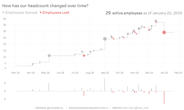 Workout Wednesday 2019 Week 4 - Tracking Headcount, with a focus on data preparation in Tableau.